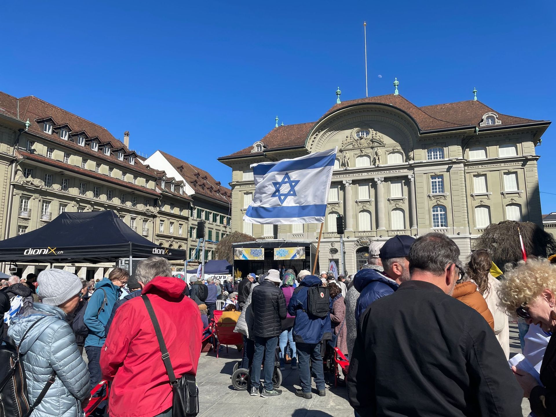 Manifestation de solidarité et de prière des Œuvres d'Israël Suisse 6 avril 2025 Place fédérale Berne